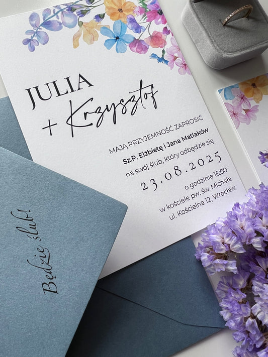 Zaproszenie minimalistyczne kwiatowe Flower Meadow
