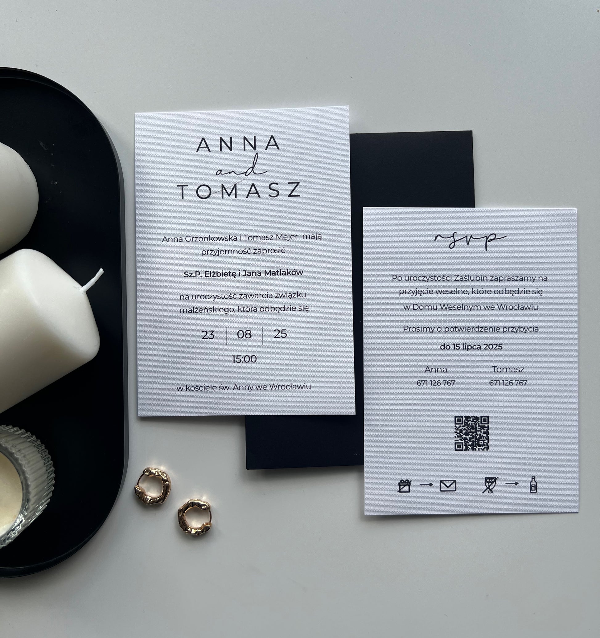 Zaproszenie Thomas to więcej niż kartka – to wstęp do świętowania najważniejszego dnia w życiu, spełnione w duchu minimalizmu i elegancji. Spraw, aby Twoi goście poczuli unikalność tego momentu już od pierwszego wejrzenia.